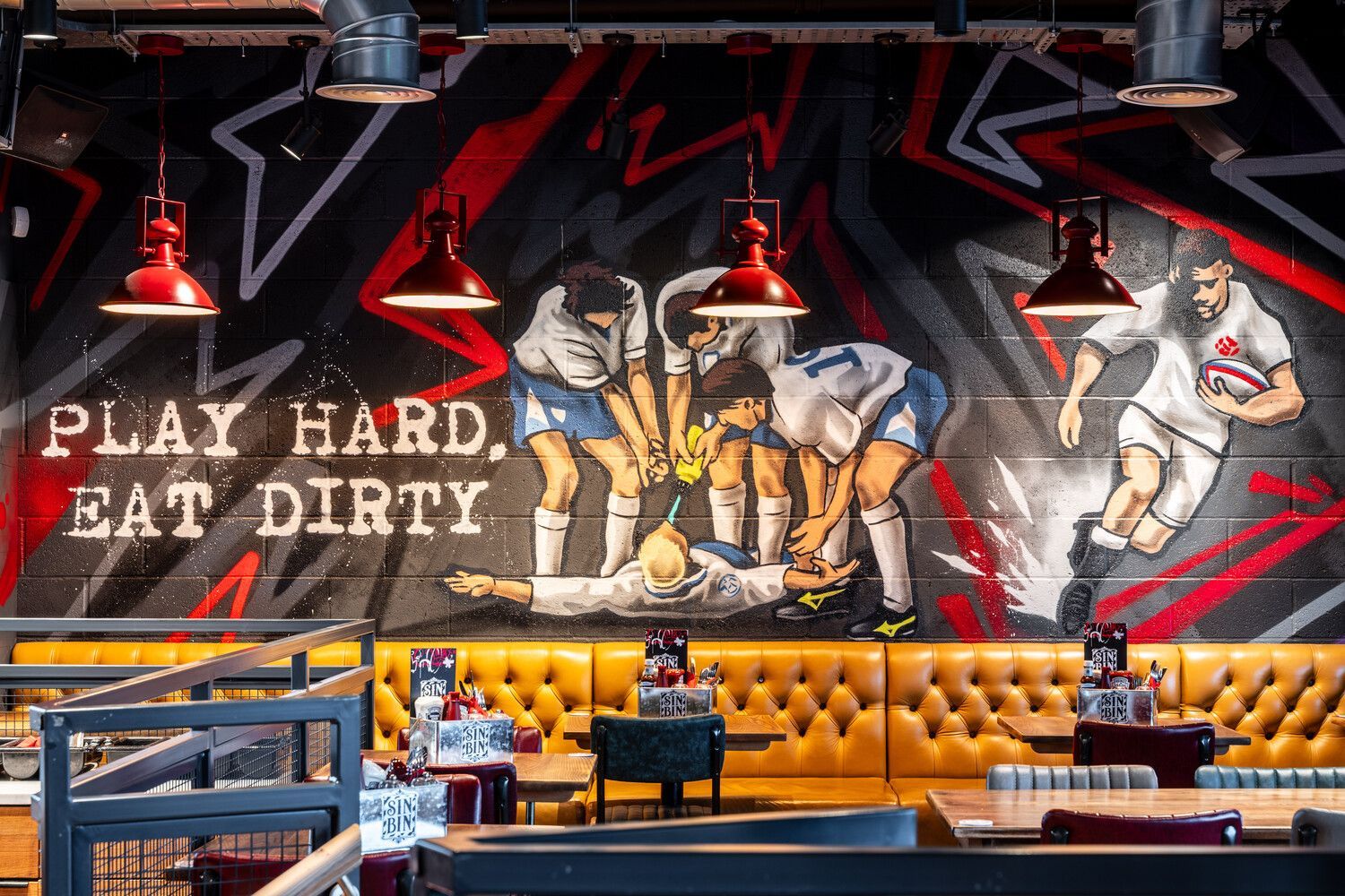 Guests enjoyed exploring the reimagined space, featuring striking tags and murals by London graffiti artist James Titchner, multiple large screens for live sport, interactive darts, and retro gaming consoles in booths. A bespoke resin bar top highlights iconic sporting moments and memorabilia.